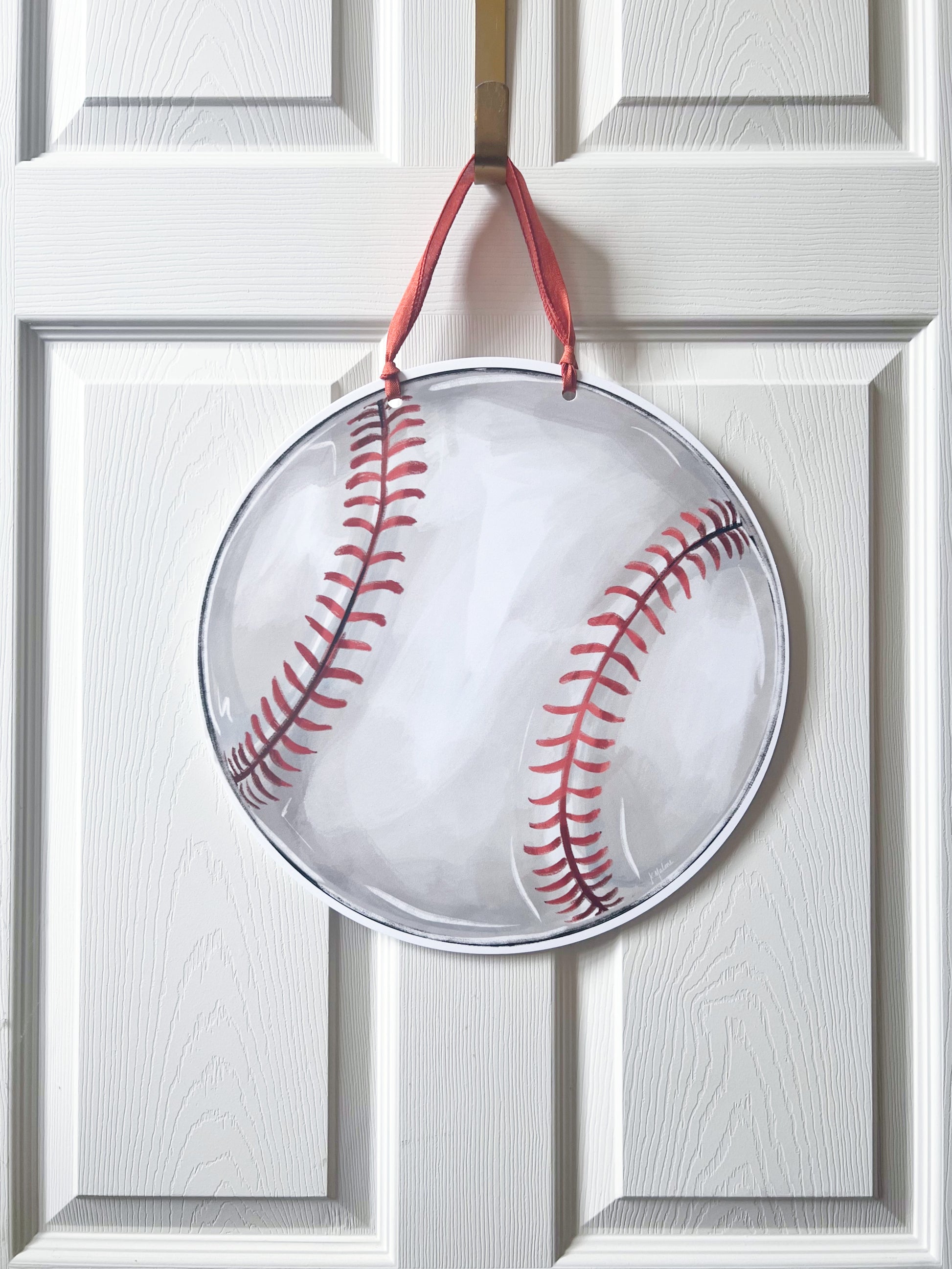 Hit a home run with this baseball door hanger! Perfect for sports enthusiasts, this is a stylish way to show off your love for the game.