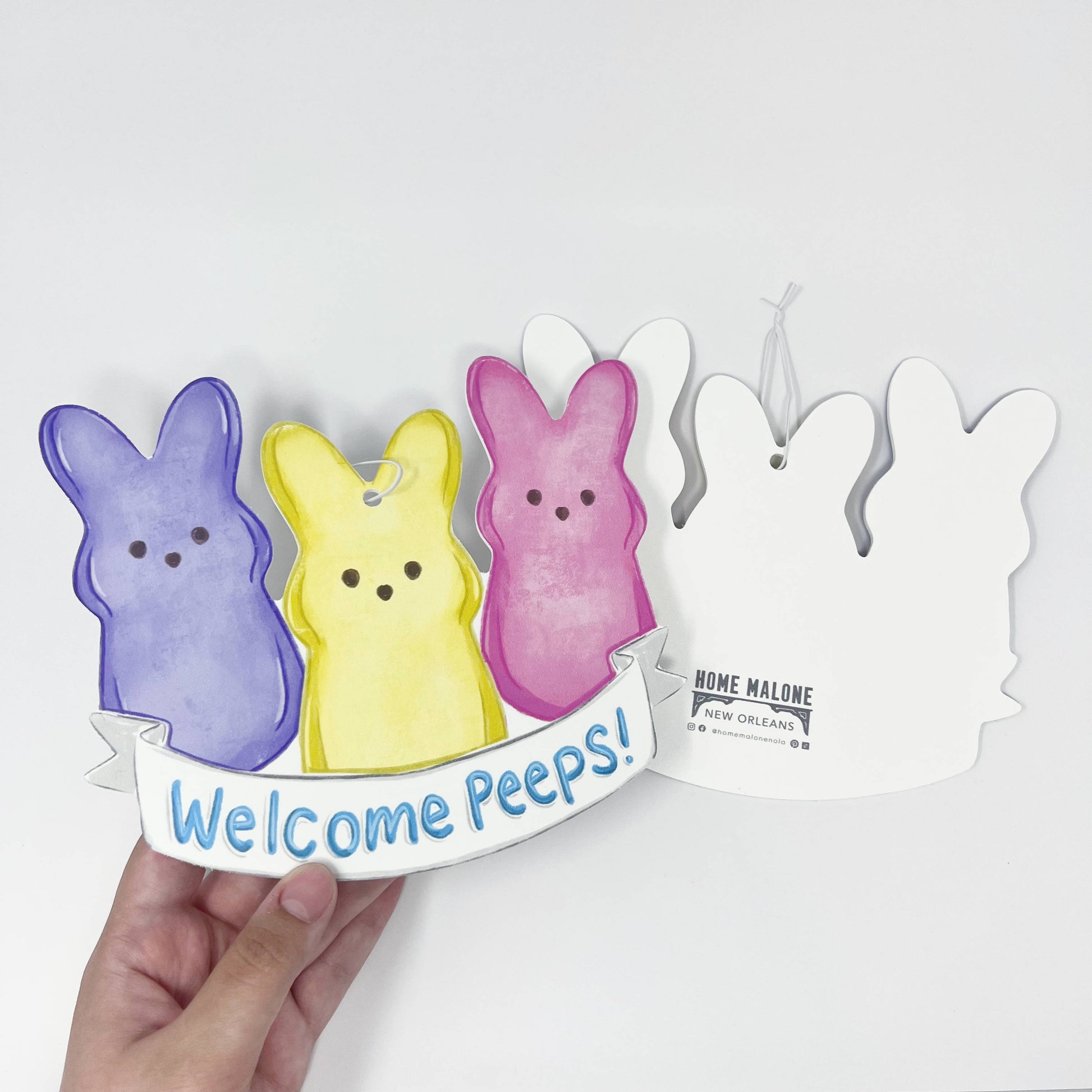 Say hello to spring with this cheerful “Welcome Peeps” decornament! Featuring bright colors and adorable marshmallow-inspired chicks, it brings a playful pop of pastel to your seasonal decor.